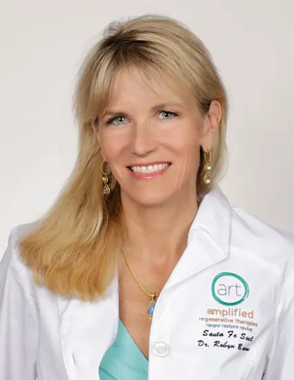 Dr. Robyn Benson is a Doctor of Oriental Medicine, regenerative medicine specialist, and founder of Santa Fe Soul Center for Regenerative Medicine. With over 32 years of experience, she brings an innovative approach to modern healthcare through Amplified Regenerative Therapies (ART).